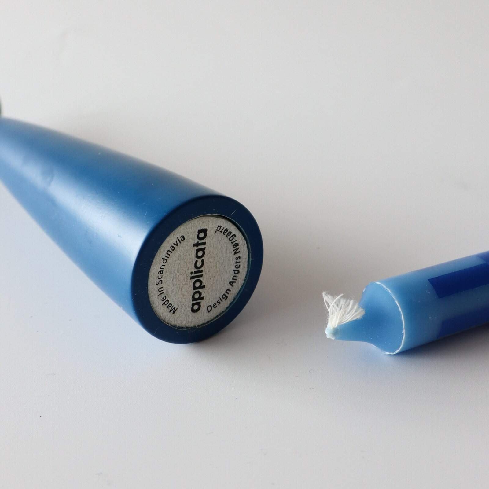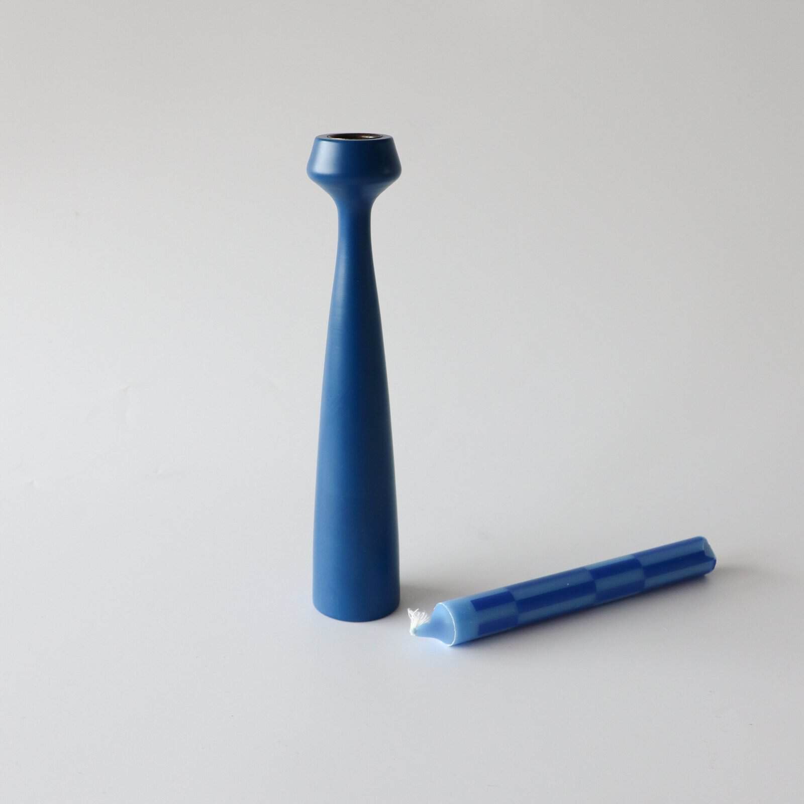 Applicata Blossom Lily donkerblauwe kandelaar van hout. Deens design. Hoogte: 24,5 cm.