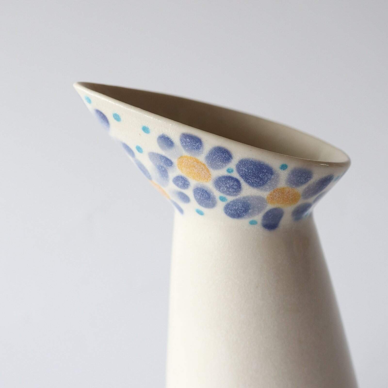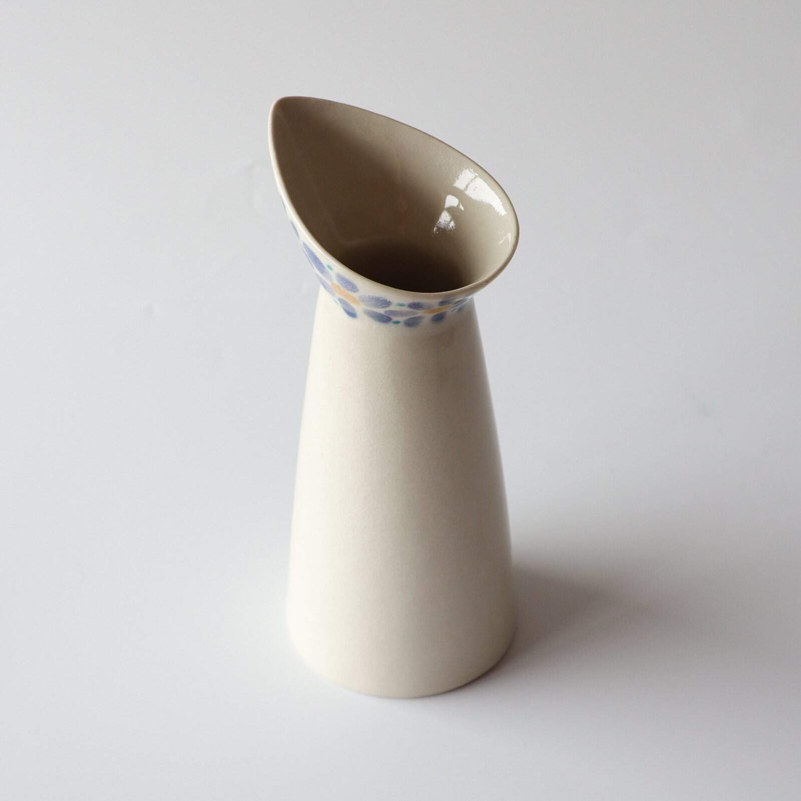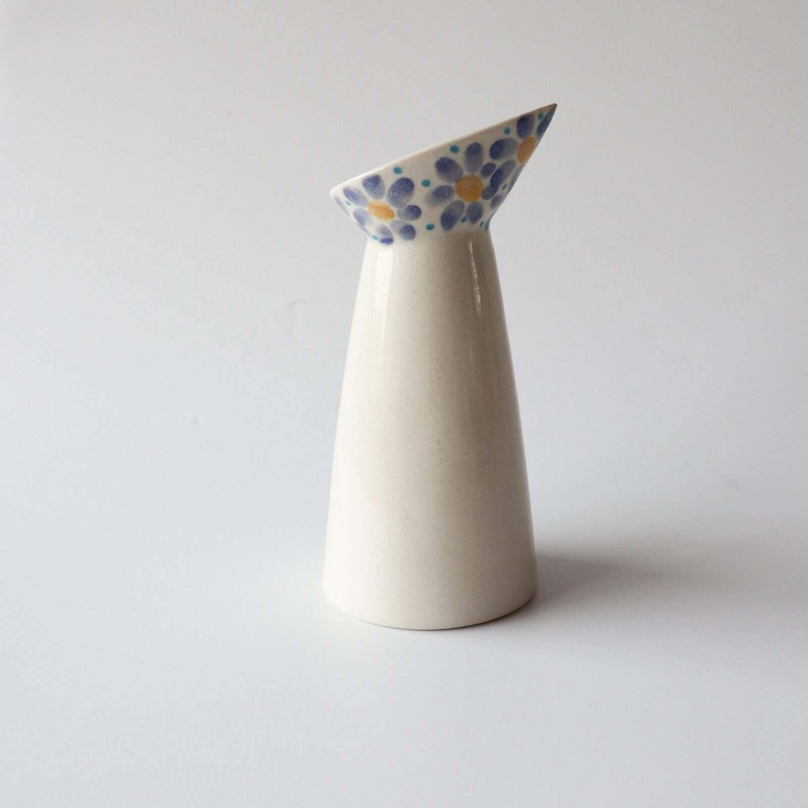 Handgemaakte kan van keramiek. Schattig formaat voor water op tafel. Ook tof als decoratie of vaasje. Gevonden in Denemarken. Hoogte: 20 cm.