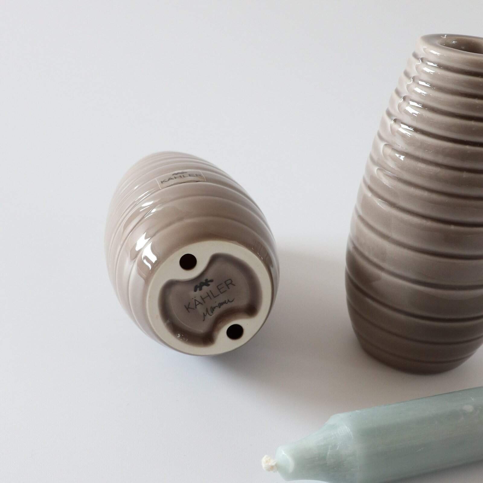 Kähler cono beige aardewerk kandelaar voor een dinerkaars. Mooie kwaliteit glazuur. Deens design. Hoogte: 9 cm. Per stuk verkocht.