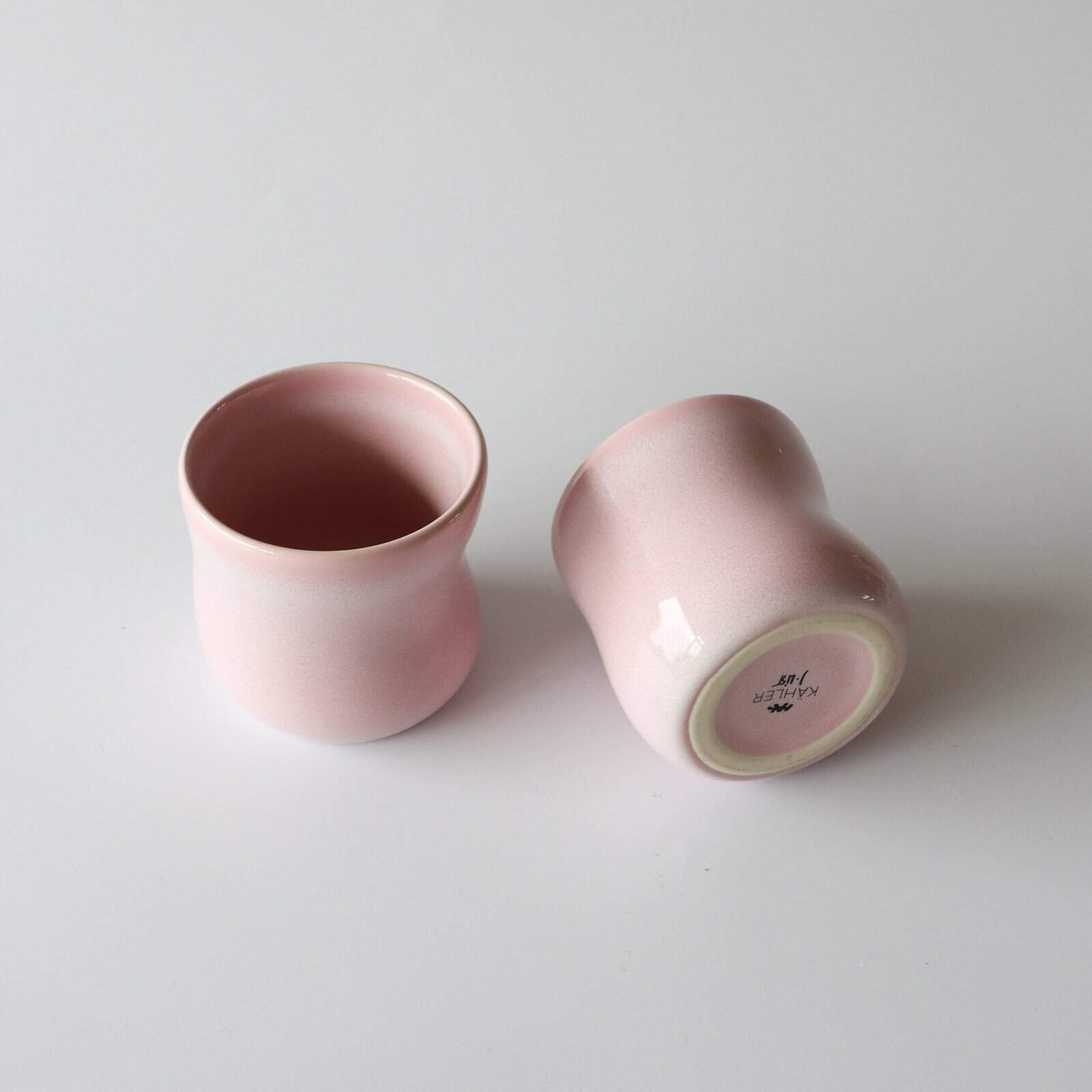 Set van 2 Kähler Mano roze kopjes. Goed formaat voor een cappuccino of thee. Deens design. Hoogte: 8 cm. Inhoud: