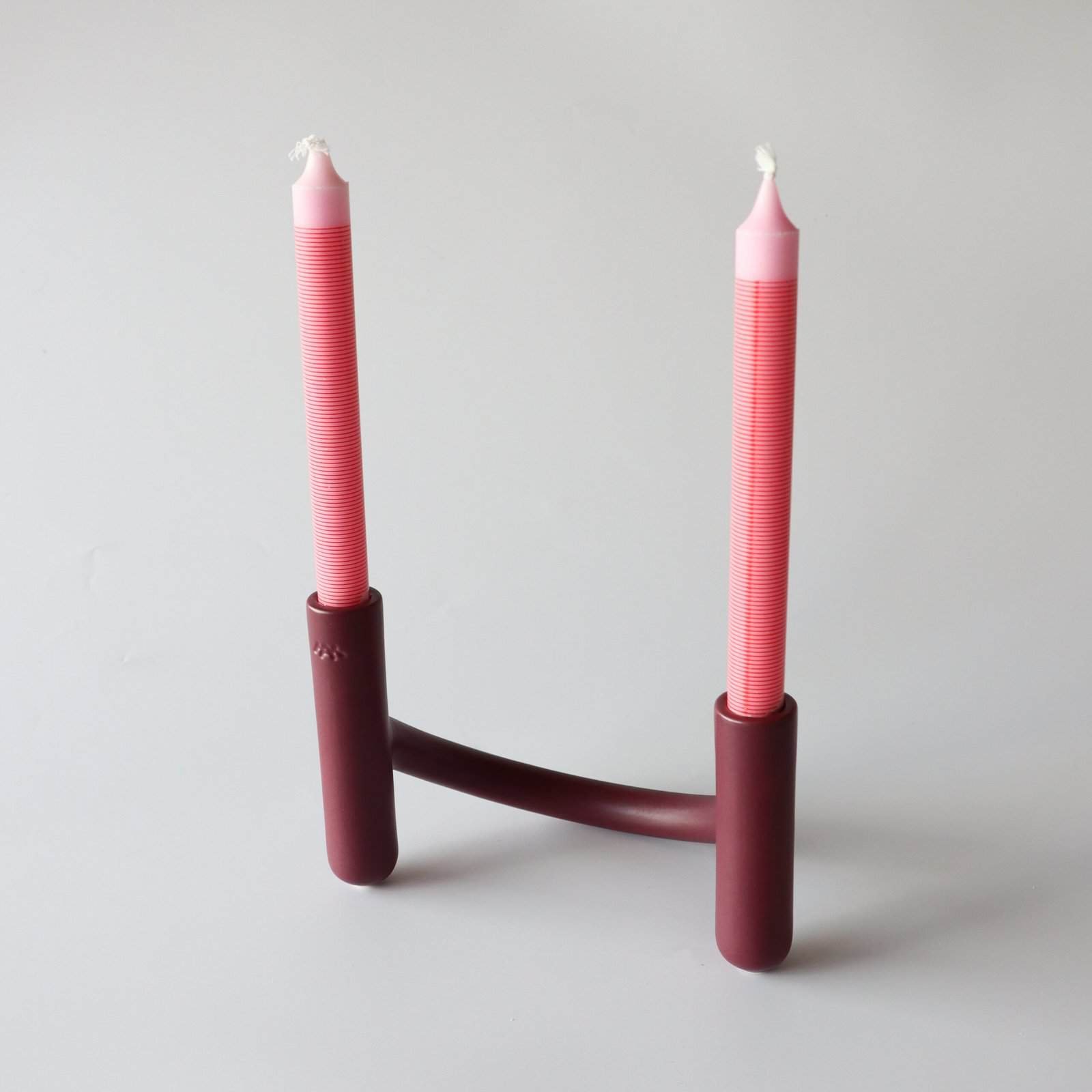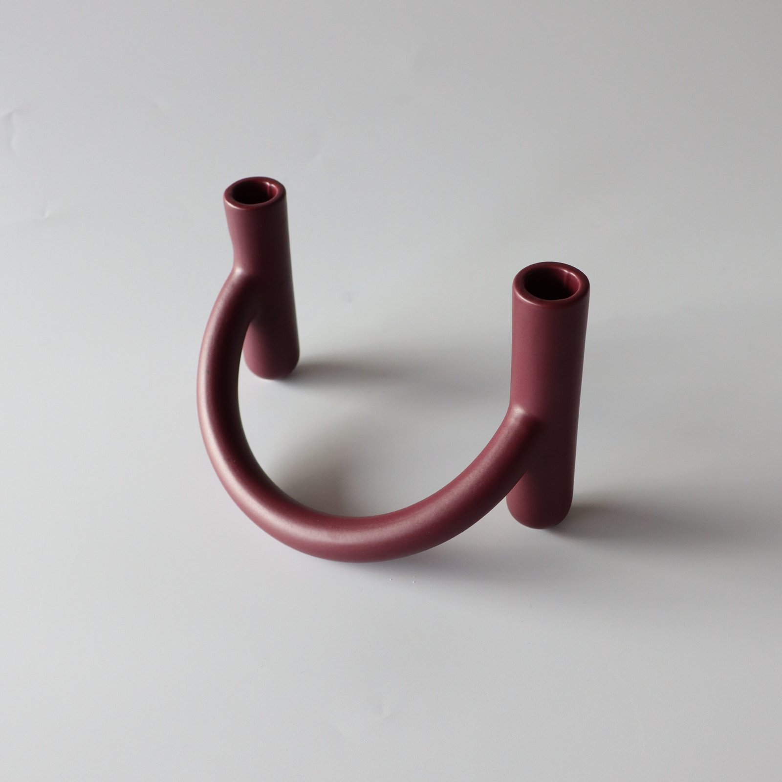Kähler Nelleman aardewerk kandelaar voor twee dinerkaarsen. Hele mooie dieppaarse kleur en heeft een matte finish. Deens design. Hoogte: 15 cm.