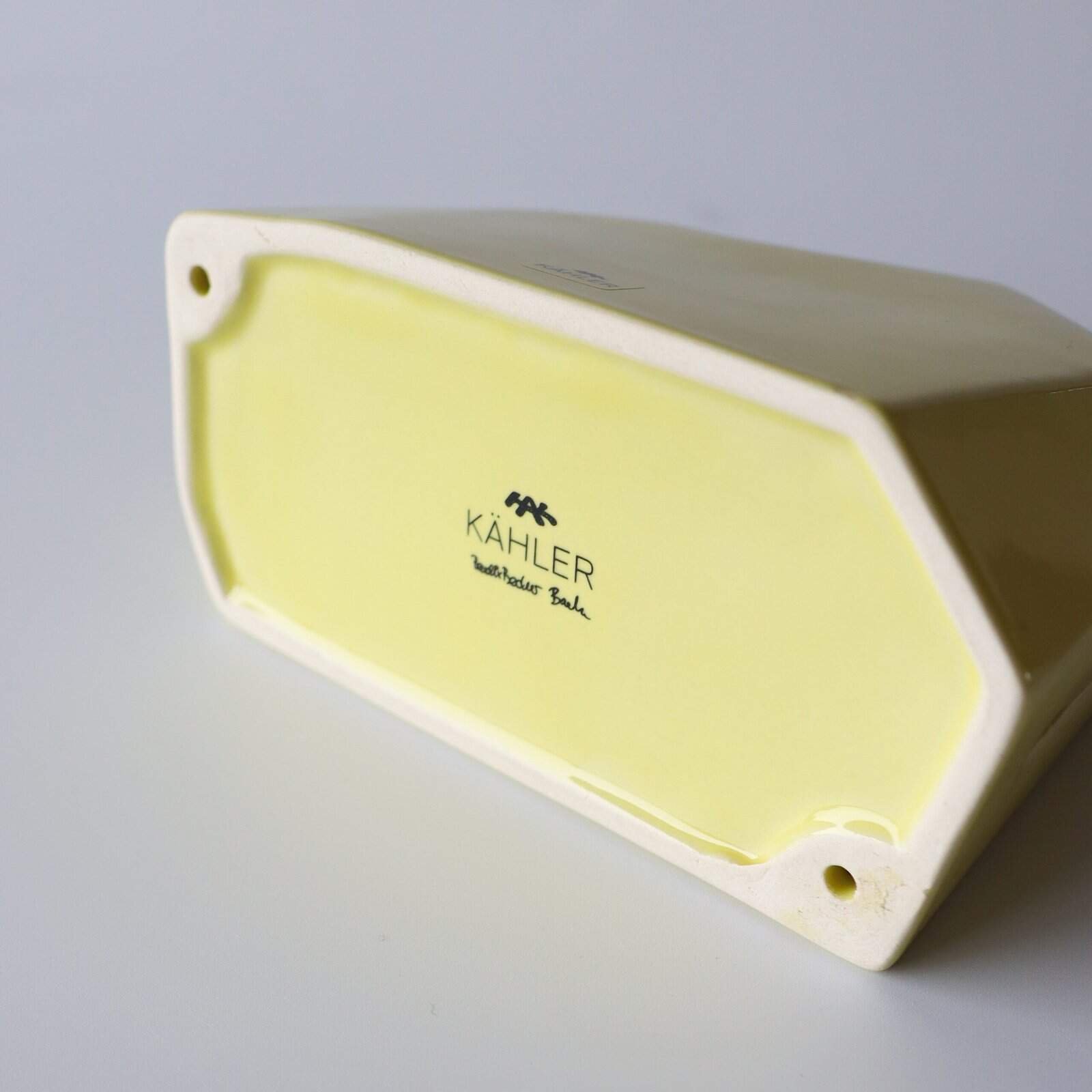 Kähler Officina houder van aardewerk in een pale gele kleur. Heel tof voor op een bureau. Deens design. Hoogte: x cm. Breedte: 14 cm.