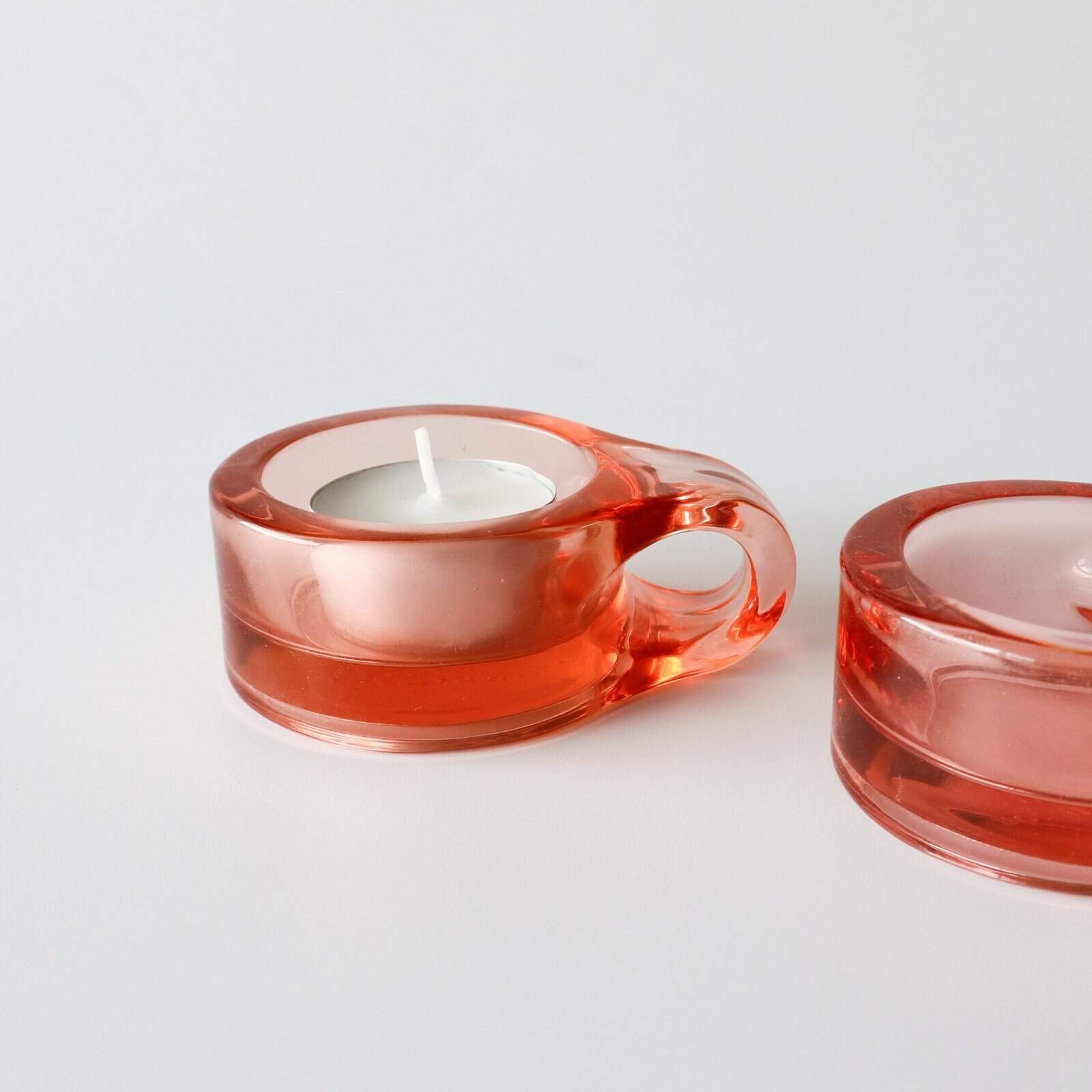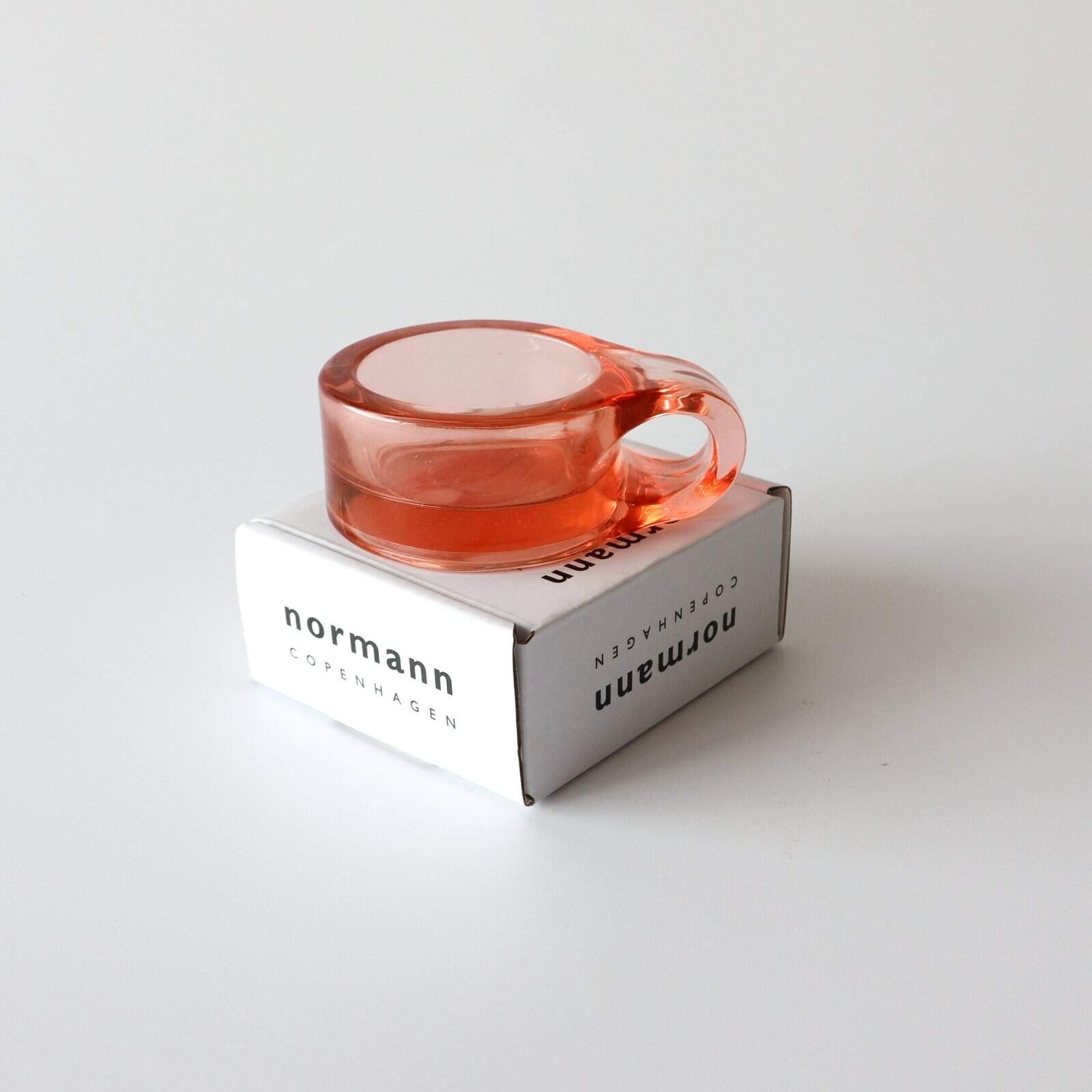 Normann Copenhagen roze waxinelichthouder, model Floe. Zware kwaliteit glas. Deens design. Diameter: 7 cm. Per stuk verkocht.