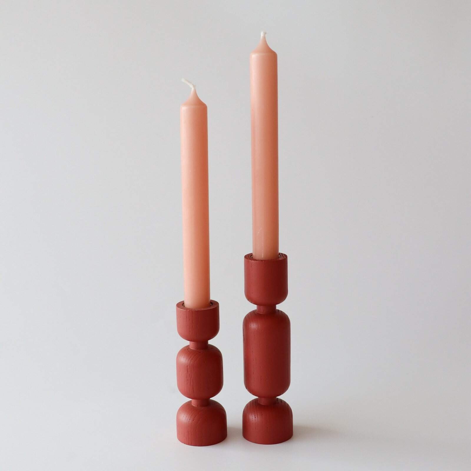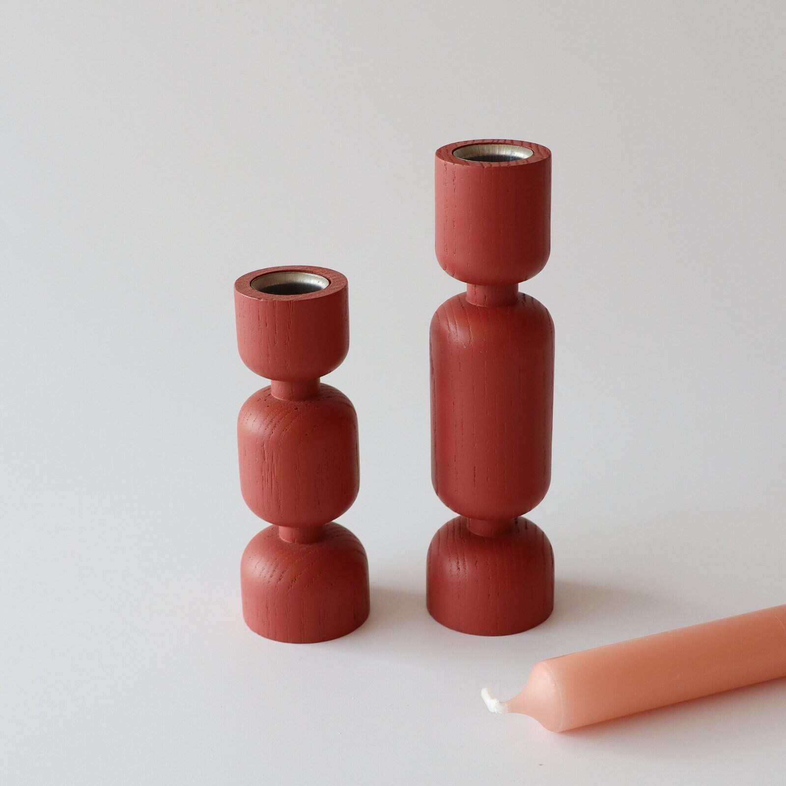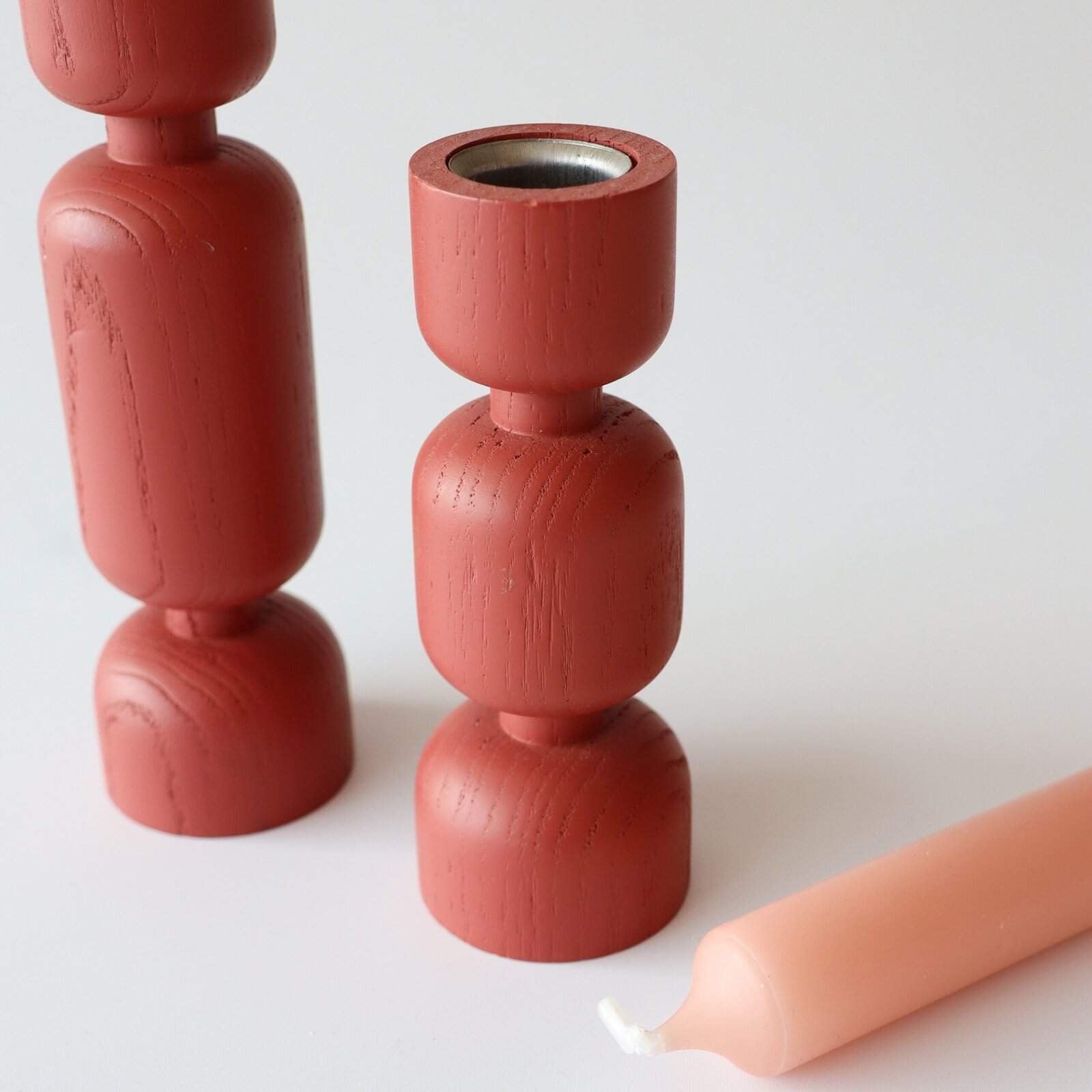 Normann Copenhagen Lumberjack kandelaar in een rode kleur. Gemaakt van hout en van mooie kwaliteit. Deens design. Hoogte: x cm. Per stuk verkocht, twee verschillende maten beschikbaar (small 12 cm, medium 16 cm).
