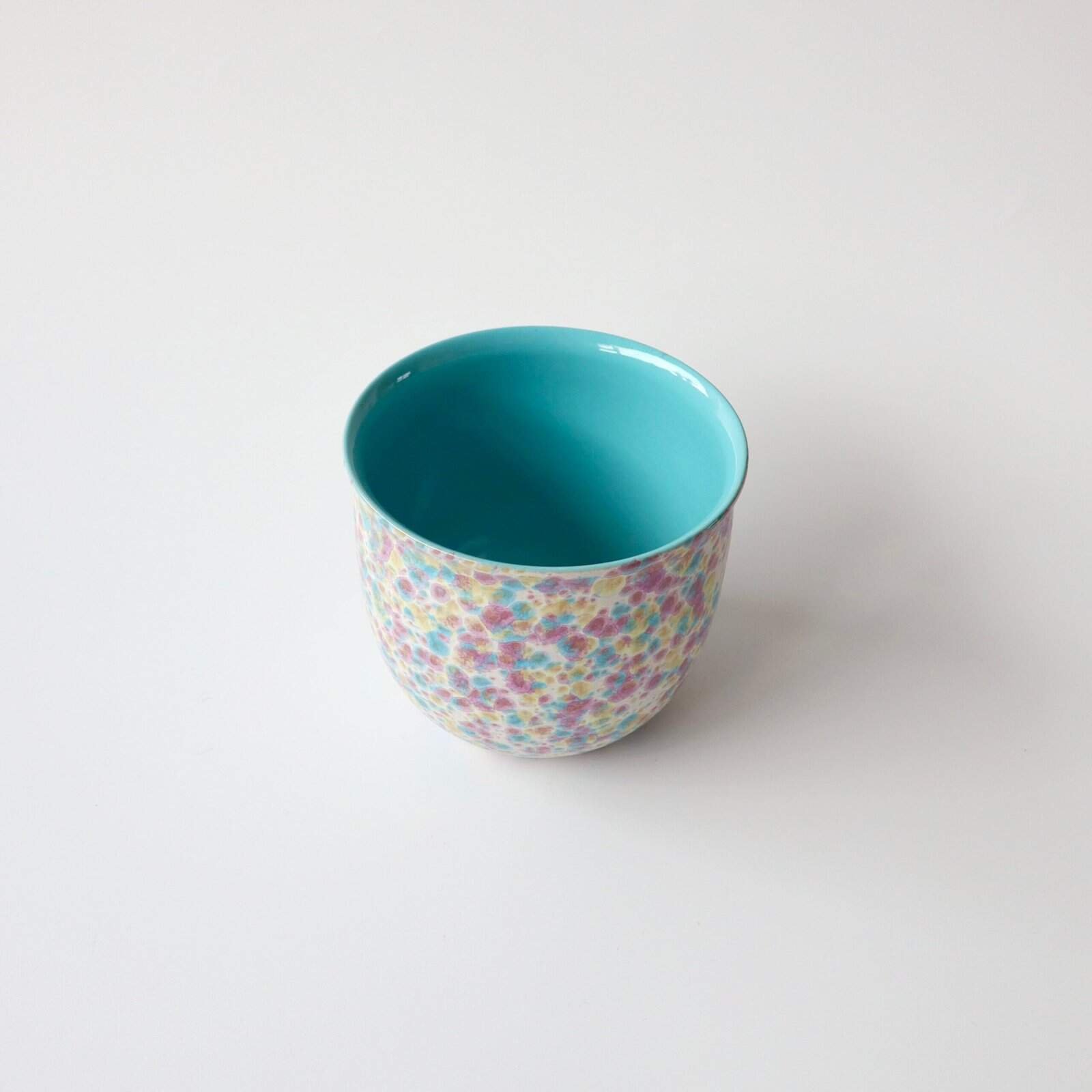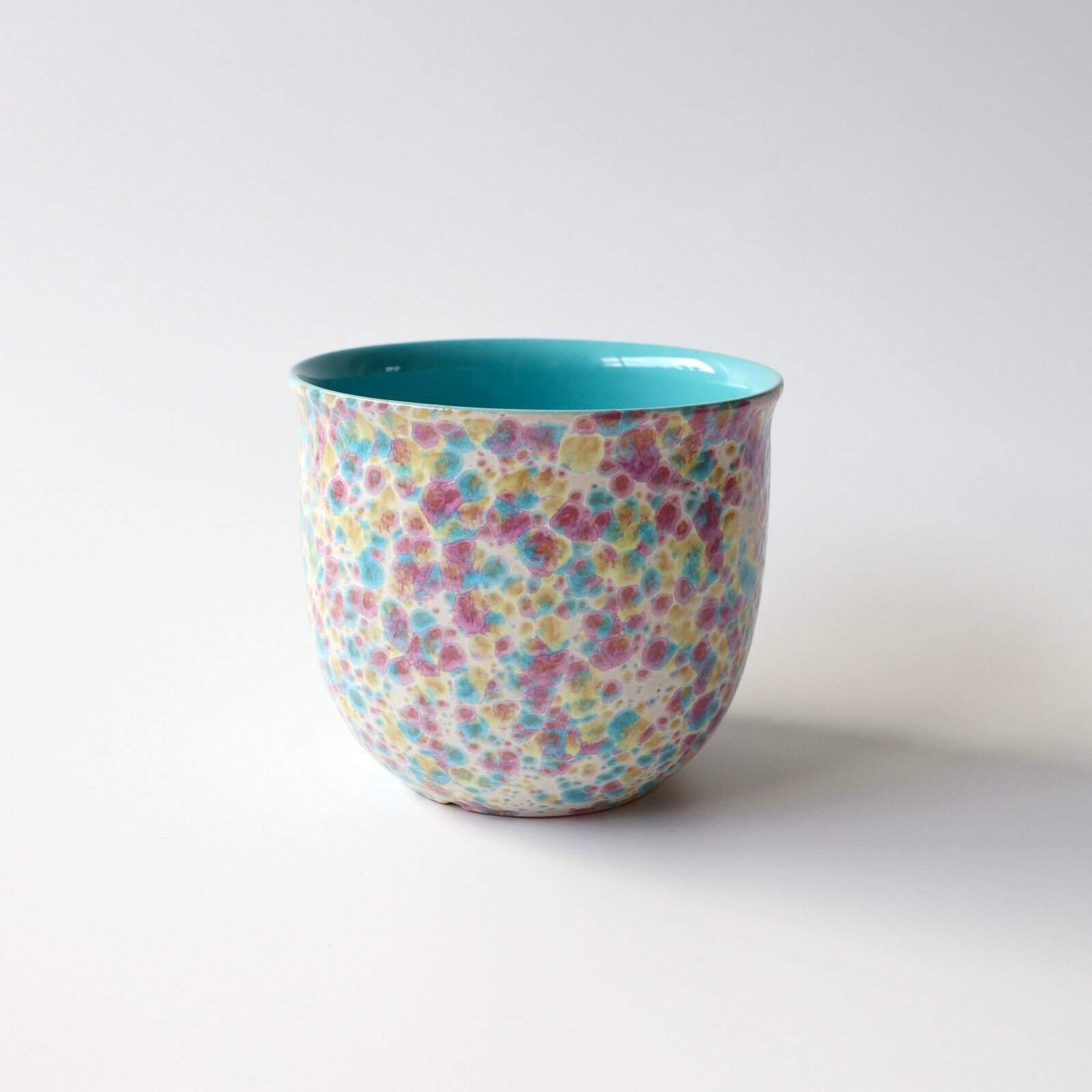 Funky vintage Scheurich West Germany bloempot. Lekker groot formaat en lekkere vrolijke kleurtjes roze, geel en blauw. Hoogte: 15 cm.