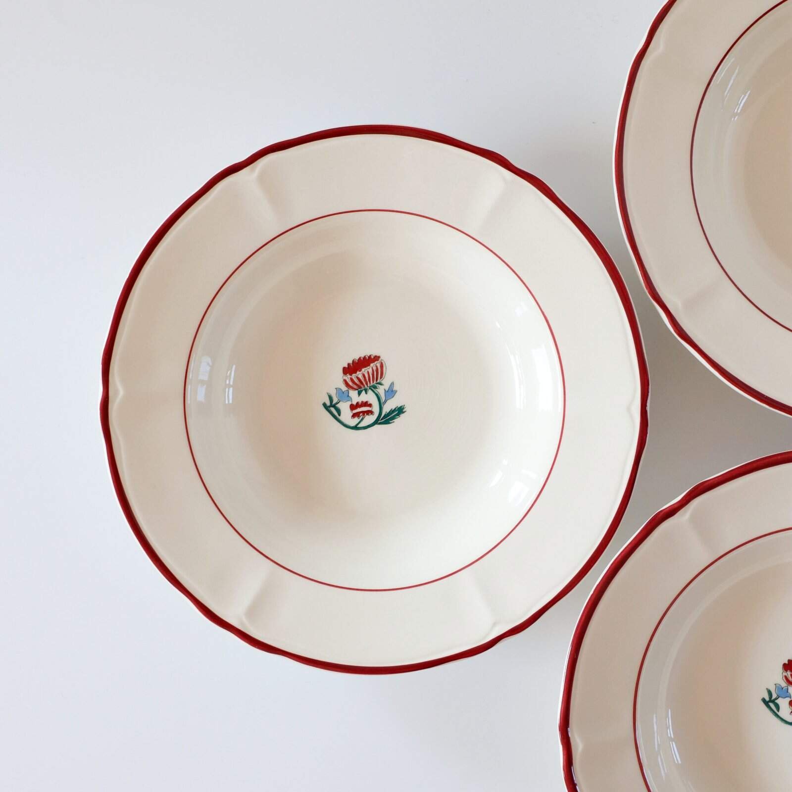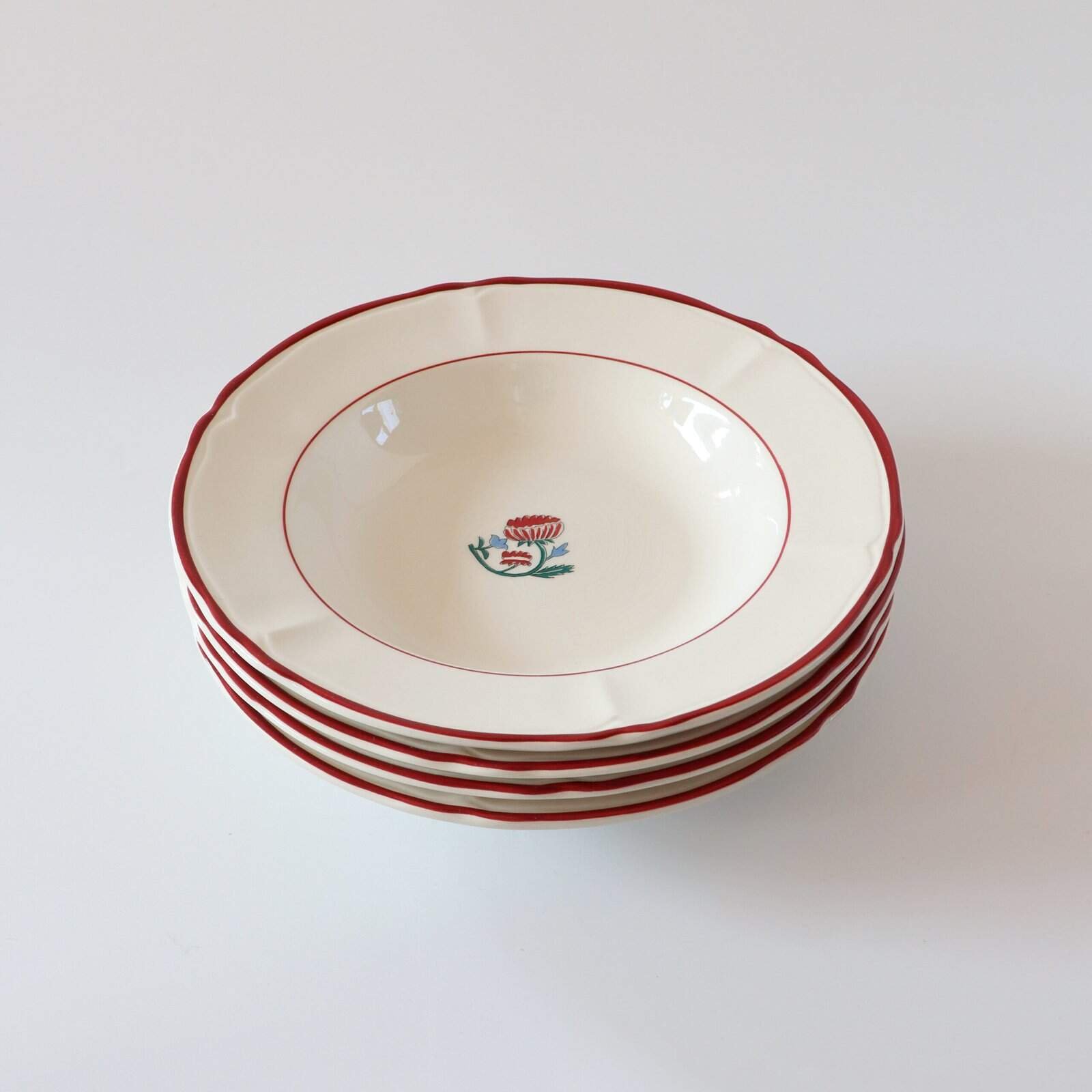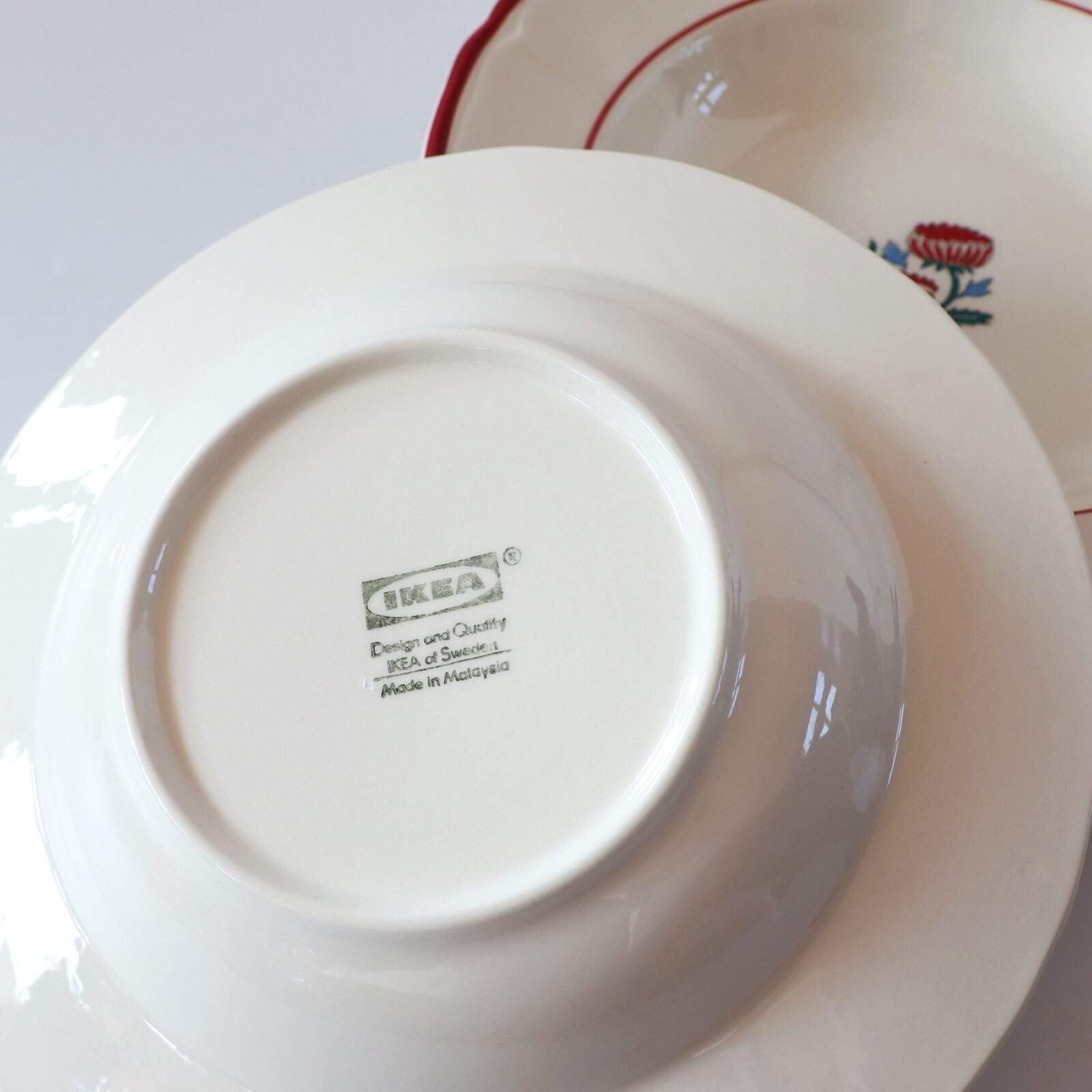 Set van 4 vintage Ikea Pastilla pastaborden. Hebben een heel leuk rood randje en bloemetje. Zijn van mooie kwaliteit. Diameter: 24 cm.
