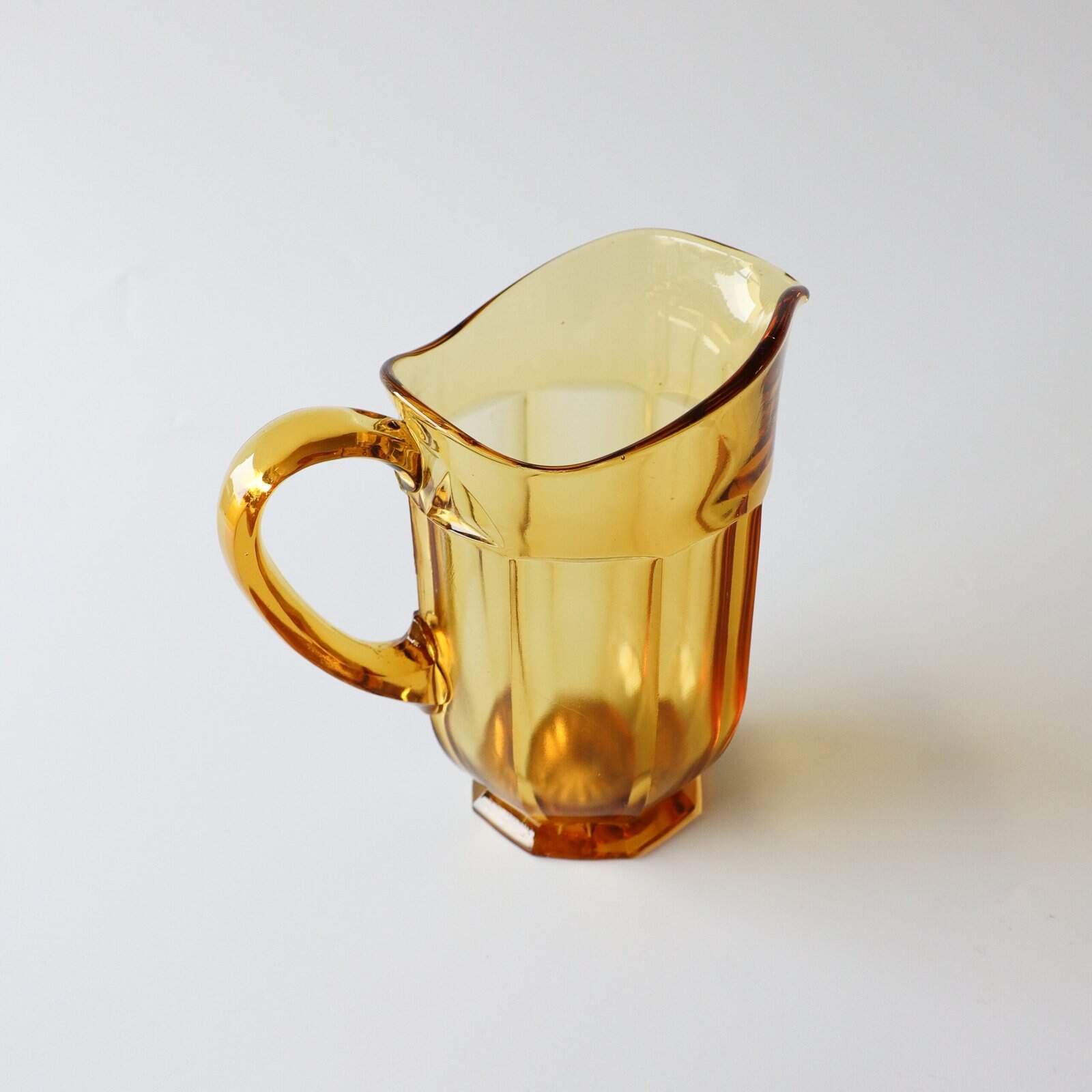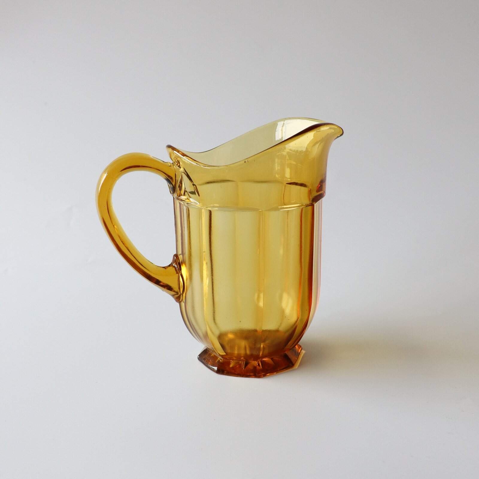 Vintage kan van geel persglas. Heel leuk voor in je keuken als decoratie of voor water op tafel. Gevonden in Denemarken. Hoogte: 16 cm.